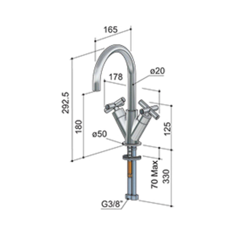 | Hoogte kraan | Hoog |