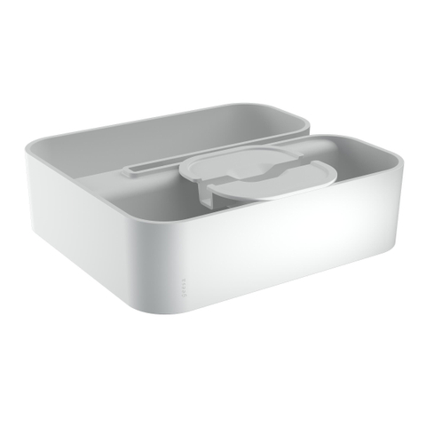 De Frame Collection biedt slimme en elegante opbergoplossingen door meerdere functies in één accessoire te combineren. De ontwerpen zijn minimalistisch en de kunststof onderdelen zijn uitneembaar voor optimaal schoonmaakgemak en hygiëne.