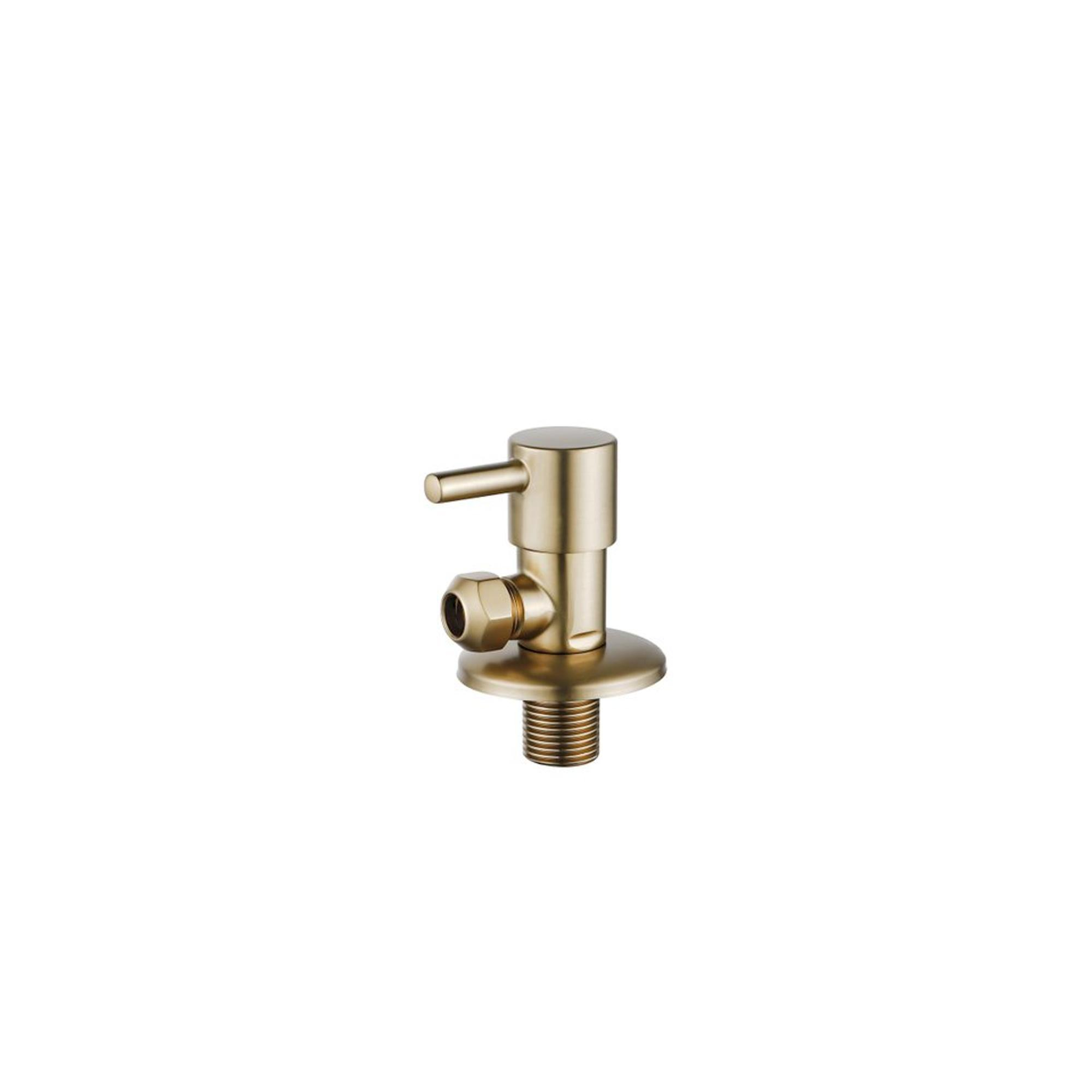 Innovatief ontworpen en stijlvol, dit hoekstopkraan is een ware blikvanger in elke badkamer. Met een haakse vorm en een combinatie van 1/2" wandaansluiting en 3/8" / 10mm knel aansluiting slang, straalt dit kraan een gevoel van luxe uit. De geborsteld messing PVD afwerking in goud voegt een vleugje elegantie toe aan je badkamerinterieur. Dit product combineert functionaliteit met esthetiek, waardoor het een must-have is voor elke moderne badkamer.