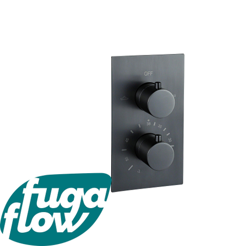 De FugaFlow Eccelente Sobrado Thermostatische Inbouwkraan - inbouwdeel - Gun Metal PVD is een prachtig stukje vakmanschap dat elke badkamer transformeert tot een oase van luxe en comfort. Met zijn strakke lijnen, elegante afwerking en duurzame materialen is deze inbouwkraan een ware eyecatcher. De Gun Metal PVD afwerking geeft een moderne uitstraling en past perfect bij diverse badkamerstijlen. Deze thermostatische inbouwkraan combineert stijl met functionaliteit en zorgt voor een moeiteloze waterregeling, waardoor jouw douche-ervaring elke keer weer een genot is.
