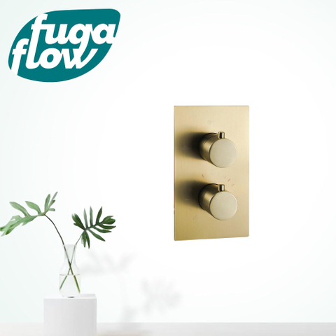 De FugaFlow Eccelente Sobrado Thermostatische Inbouwkraan - inbouwdeel - geborsteld messing PVD is een prachtig vormgegeven toevoeging aan elke badkamer. Met zijn elegante ontwerp en hoogwaardige afwerking straalt dit product luxe en stijl uit. Deze thermostatische inbouwkraan is niet alleen functioneel, maar ook een visueel pronkstuk dat de uitstraling van je badkamer naar een hoger niveau tilt. Met zijn geborsteld messing PVD afwerking voegt deze kraan een vleugje verfijning toe aan elke badkamerinrichting. Geniet van een combinatie van esthetiek en functionaliteit met de FugaFlow Eccelente Sobrado Thermostatische Inbouwkraan.