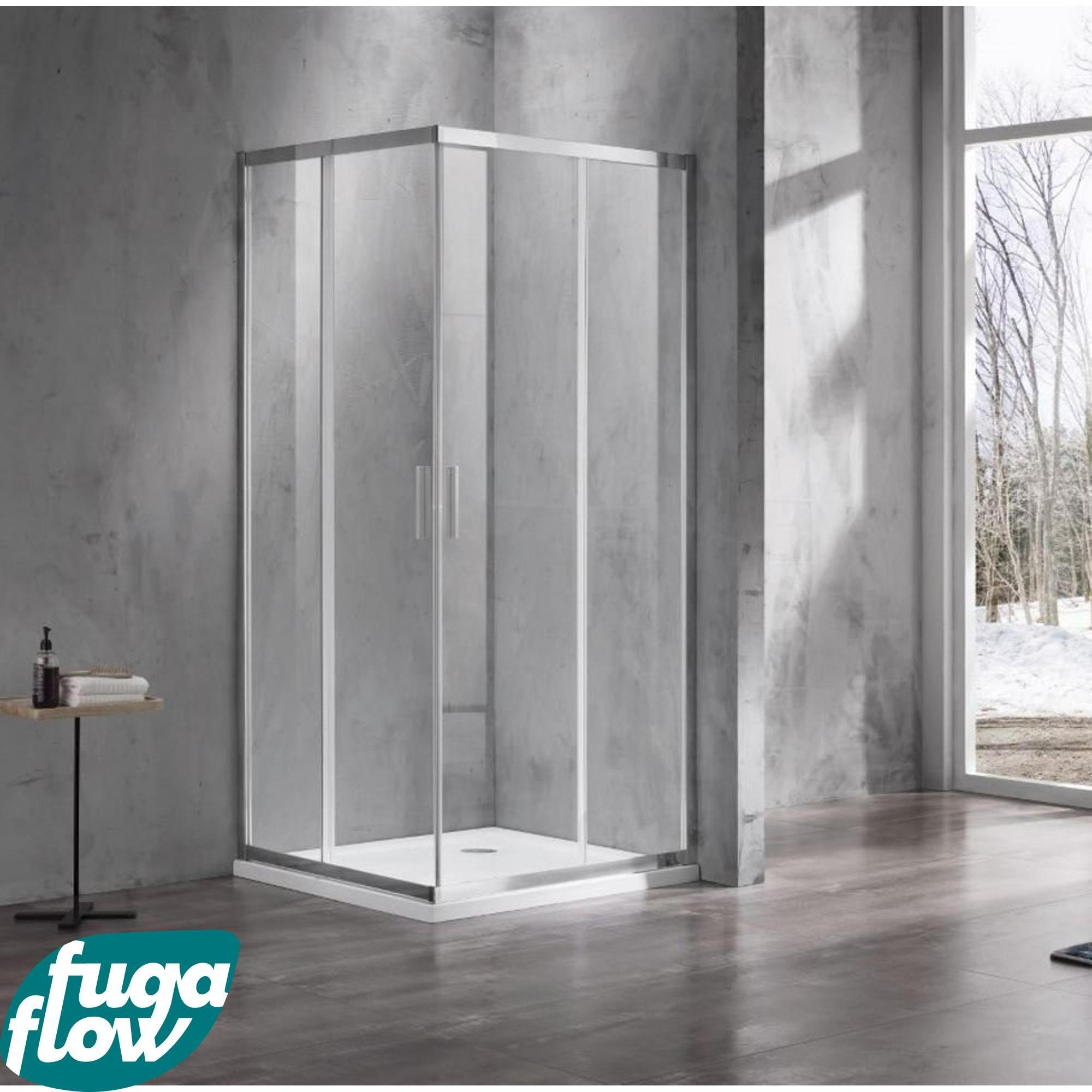 FugaFlow Efficiente Vetro Douchecabine - 100x100x200cm - hoekinstap - helder glas - profiel - chroom