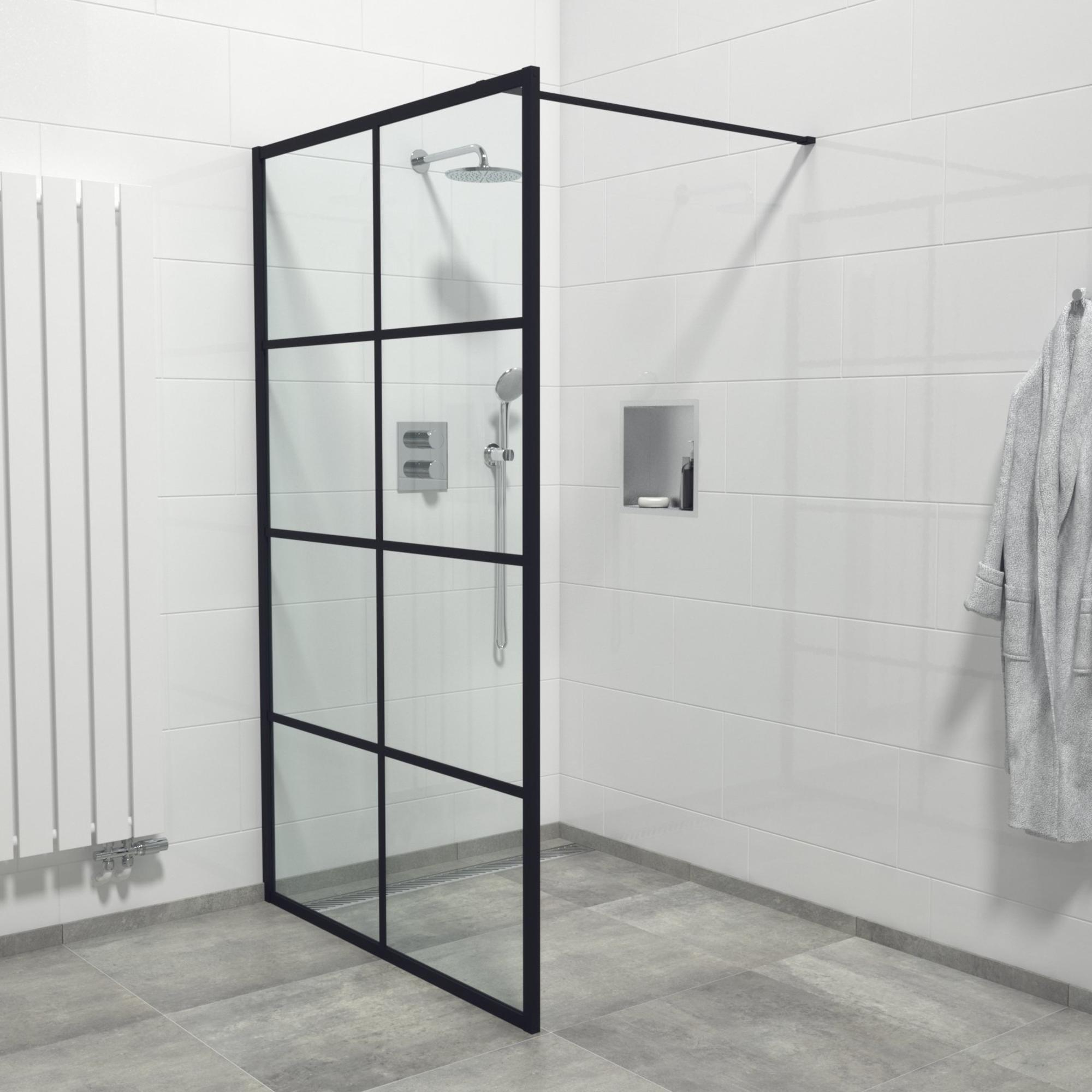 De FugaFlow Efficiente Vetro Inloopdouche - 140x200cm - windows frame buitenzijde - anti kalk - mat zwart is een prachtige toevoeging aan elke badkamer. Met zijn elegante ontwerp en moderne uitstraling, brengt deze inloopdouche een gevoel van luxe en stijl in de ruimte. Het mat zwarte frame geeft een eigentijdse touch, terwijl de anti-kalk eigenschappen zorgen voor gemakkelijk onderhoud en langdurige helderheid. Met afmetingen van 140x200cm biedt deze douche voldoende ruimte en comfort voor een ontspannende doucheruimte.