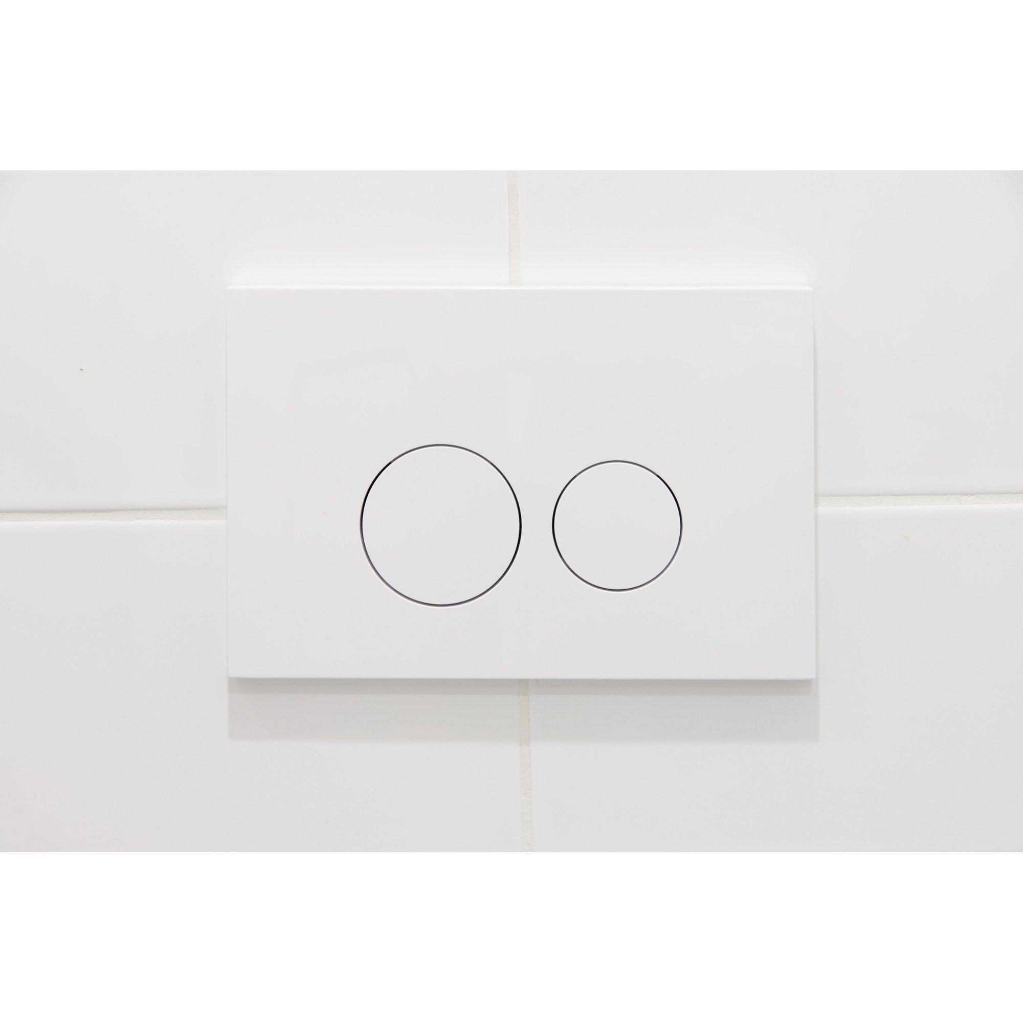 De FugaFlow Efficiente Press Bedieningsplaat straalt stijl en klasse uit met zijn glanzend witte kunststof afwerking. De ronde knoppen voegen een vleugje elegantie toe aan het geheel, waardoor deze bedieningsplaat perfect past in een moderne badkameromgeving. Het minimalistische ontwerp zorgt voor een tijdloze uitstraling die moeiteloos kan worden gecombineerd met verschillende badkamerstijlen.