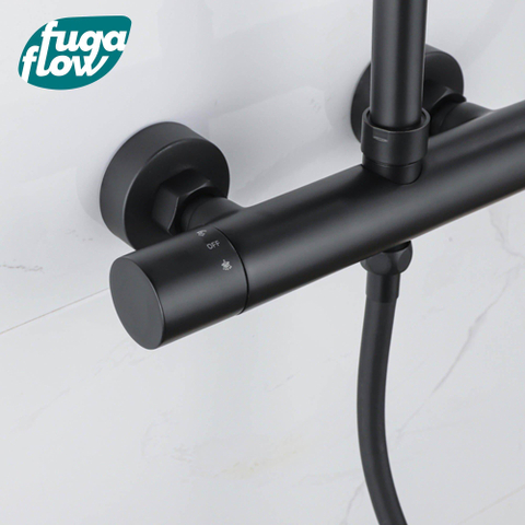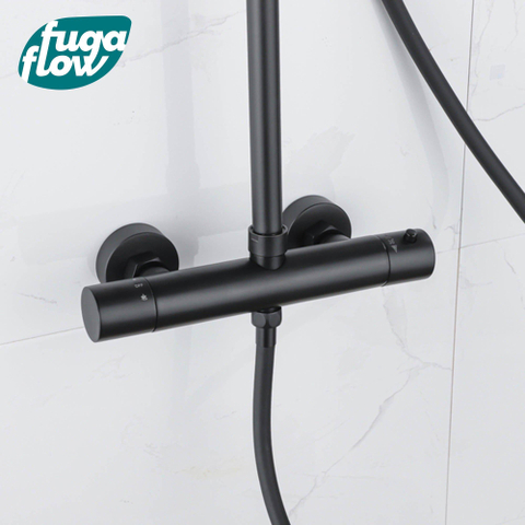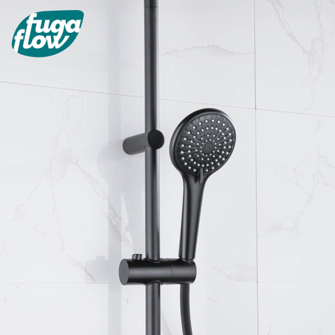 FugaFlow Efficiente Sobrado regendoucheset met thermostaat hoofddouche 30cm handdouche 3 standen zwart 110cm