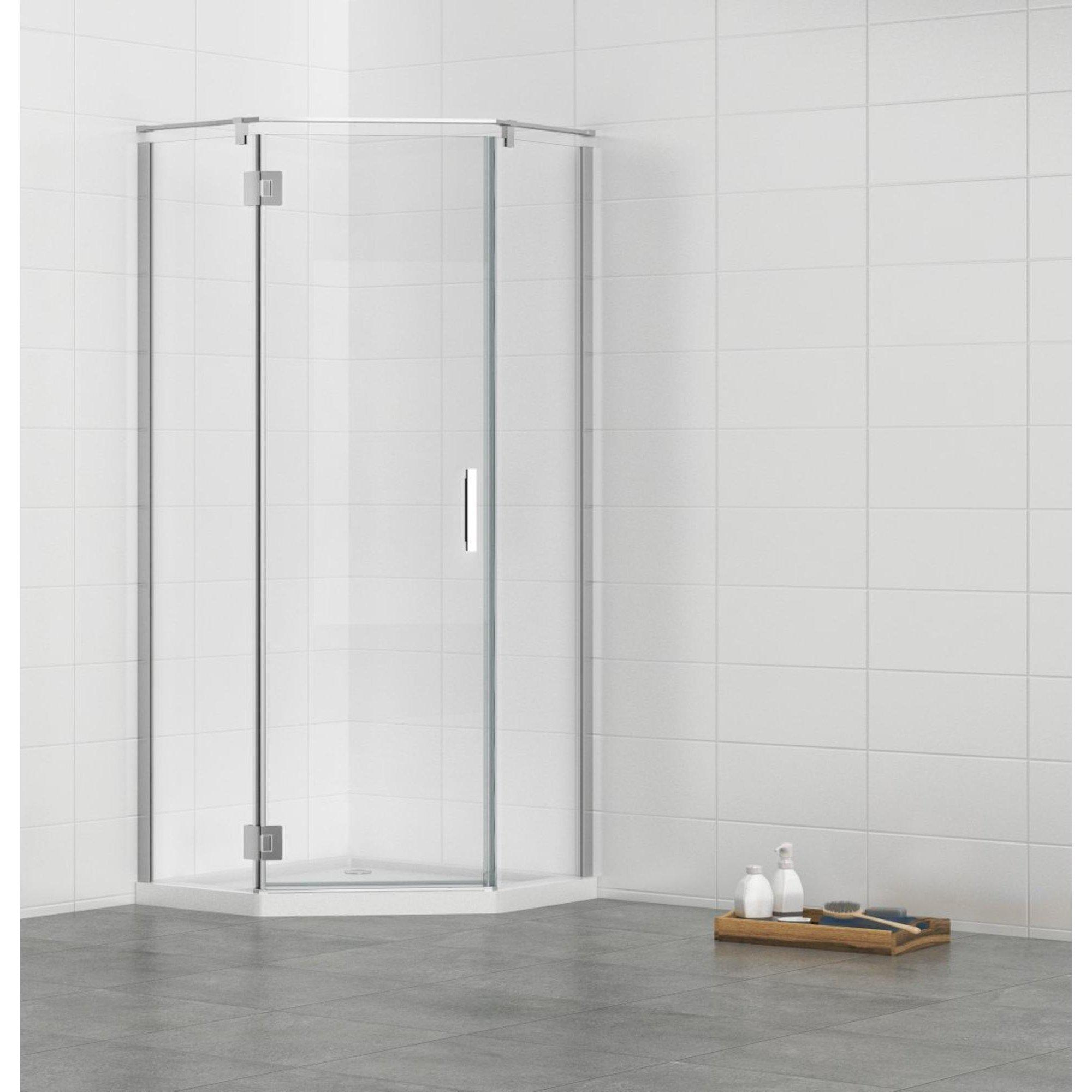 FugaFlow Efficiente Vetro NWA3231 Douchecabine - 90x90x195cm - vijfhoek chroom profiel en helder glas
