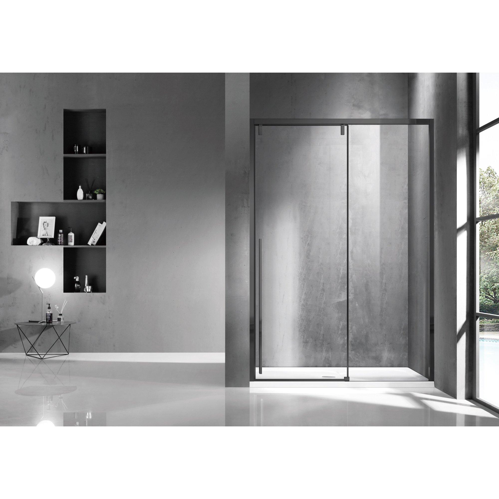 De FugaFlow Efficiente Vetro Schuifdeur straalt stijl en elegantie uit met zijn zwarte matte afwerking en strakke lijnen. Het moderne ontwerp past perfect bij hedendaagse badkamers, waardoor een luxe uitstraling wordt gecreëerd. De combinatie van materialen en afwerking zorgt voor een tijdloos design dat de tand des tijds doorstaat.