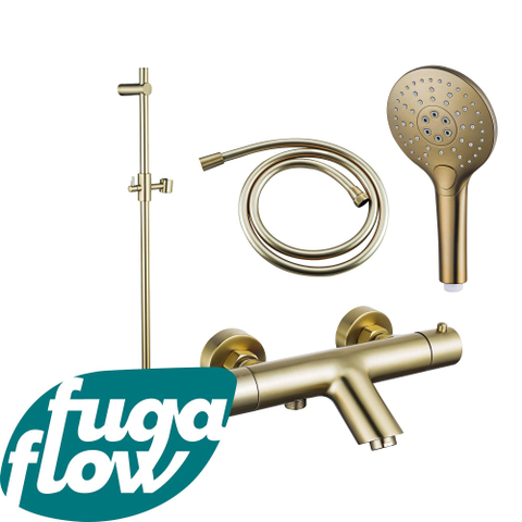 FugaFlow Eccelente Sobrado Badkamer badkraan met glijstangset met ronde handdouche, gladde doucheslang geborsteld messing PVD