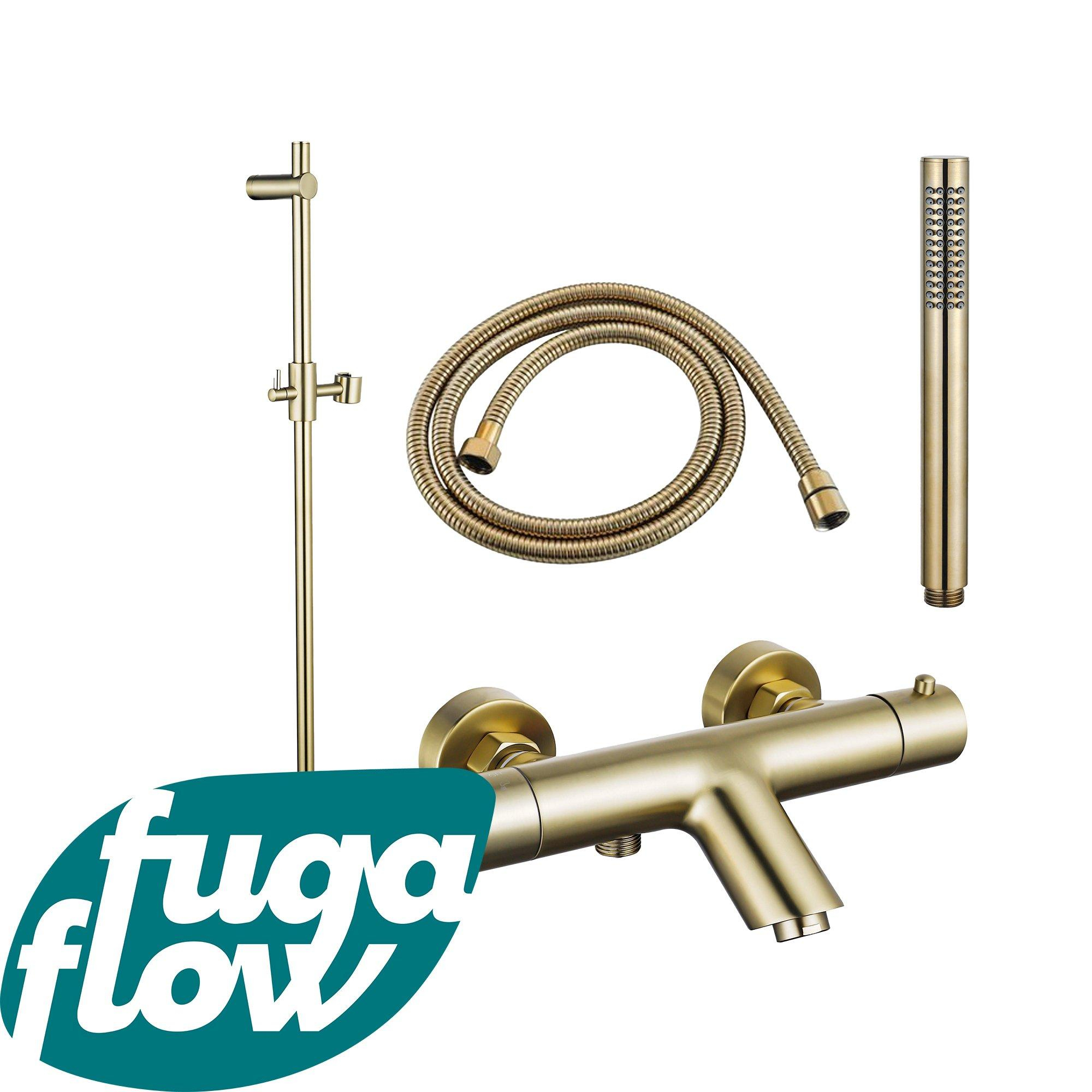 FugaFlow Eccelente Sobrado badkraan met glijstangset met staafhanddouche, metalen doucheslang geborsteld messing PVD