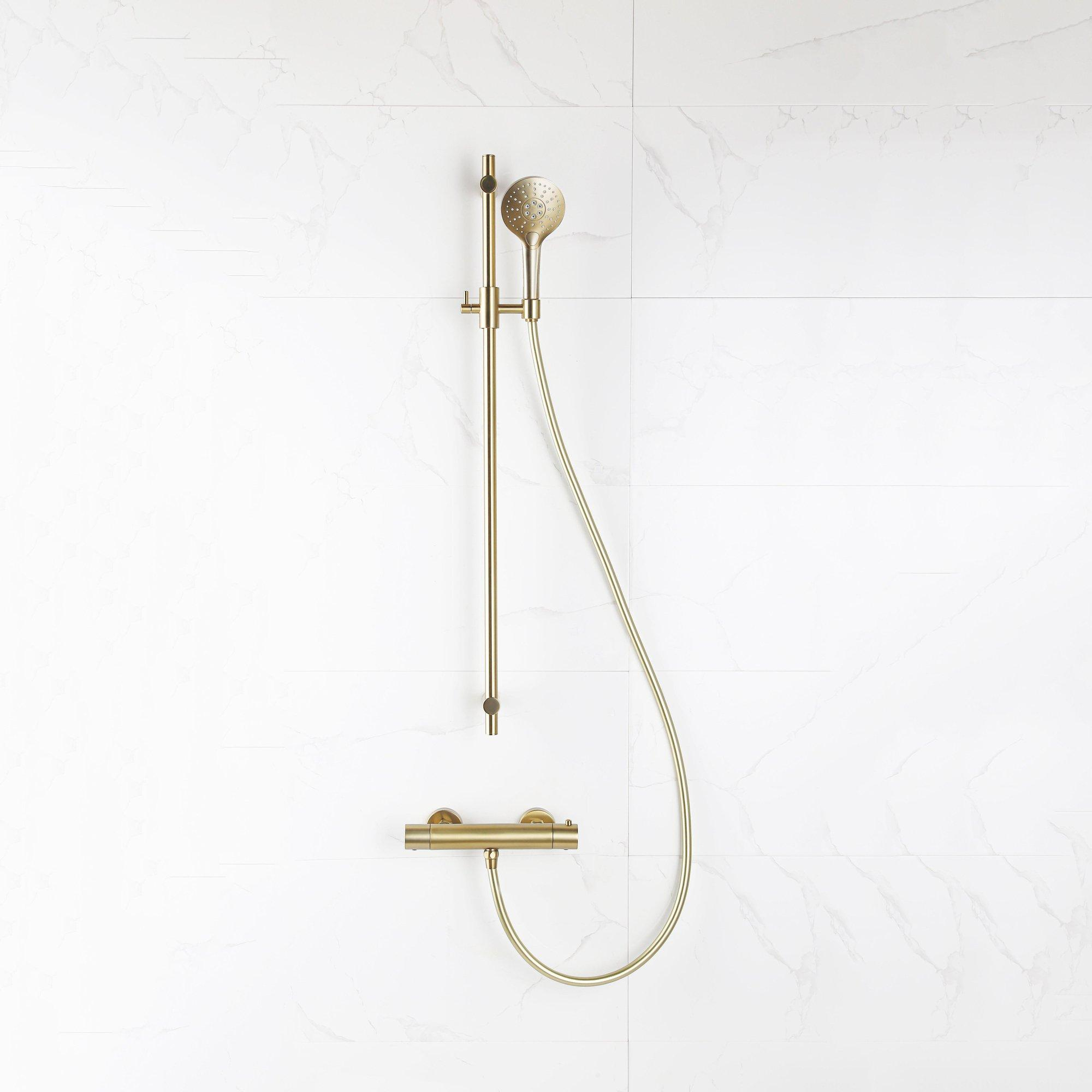 FugaFlow Eccelente Sobrado Badkamer douchekraan met glijstangset met ronde handdouche, gladde doucheslang geborsteld messing PVD