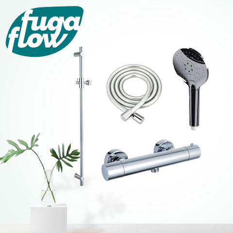 FugaFlow Eccelente Sobrado Badkamer douchekraan met glijstangset met ronde handdouche, gladde doucheslang chroom