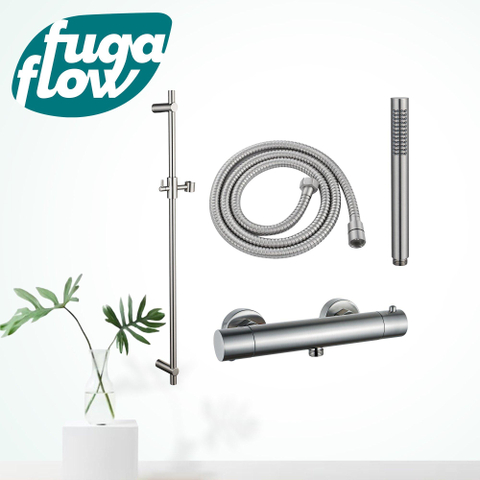 FugaFlow Eccelente Sobrado Badkamer douchekraan met glijstangset met staafhanddouche, metalen doucheslang geborsteld RVS PVD