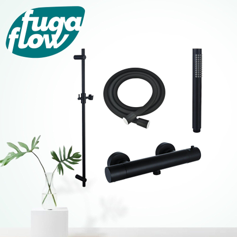 FugaFlow Eccelente Sobrado Badkamer douchekraan met glijstangset met staafhanddouche, gladde doucheslang mat zwart