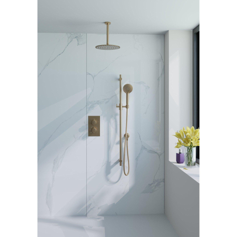 De FugaFlow Eccelente Sobrado Inbouw Regendoucheset is een prachtig stukje vakmanschap dat elke badkamer transformeert tot een luxe spa-ervaring. Met zijn elegante design en hoogwaardige materialen straalt deze regendoucheset klasse en stijl uit. Geniet van een ontspannende douche-ervaring als nooit tevoren met deze thermostatische set, compleet met een plafondarm, glijstang, 25cm hoofddouche, en een handdouche in een prachtige geborsteld messing PVD afwerking. Laat jezelf onderdompelen in luxe en comfort met de FugaFlow Eccelente Sobrado Inbouw Regendoucheset.