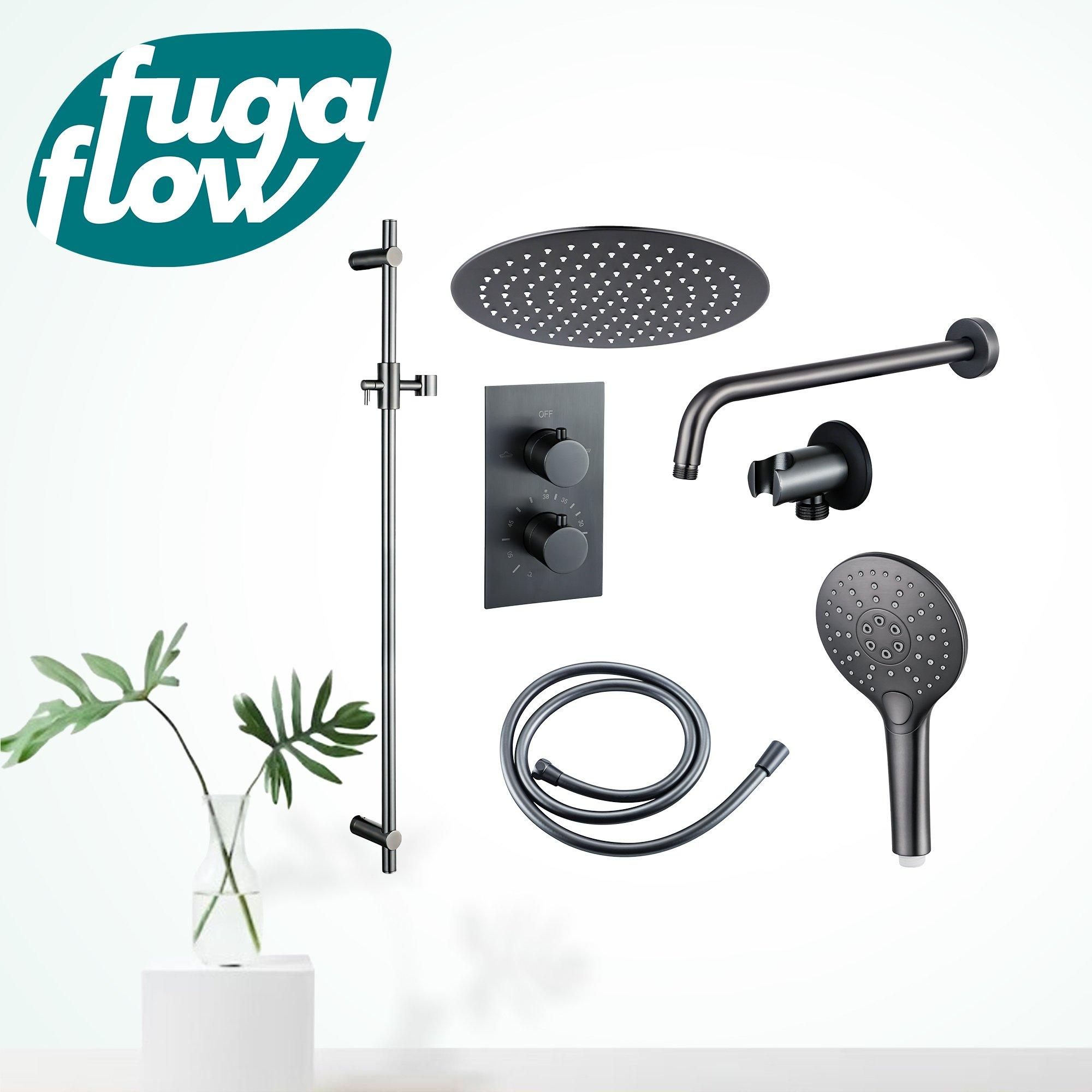 FugaFlow Eccelente Sobrado Inbouw Regendoucheset - thermostatisch - wandarm -glijstang - 25cm hoofddouche -handdouche rond - gunmetal PVD
