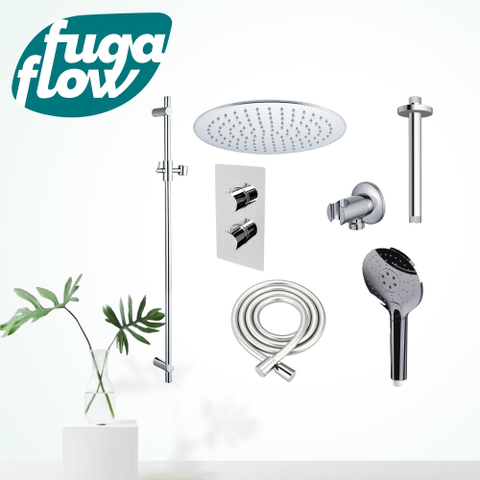 FugaFlow Eccelente Sobrado Badkamer Inbouw Regendoucheset - thermostatisch - plafondarm -glijstang - 25cm hoofddouche - handdouche rond - chroom