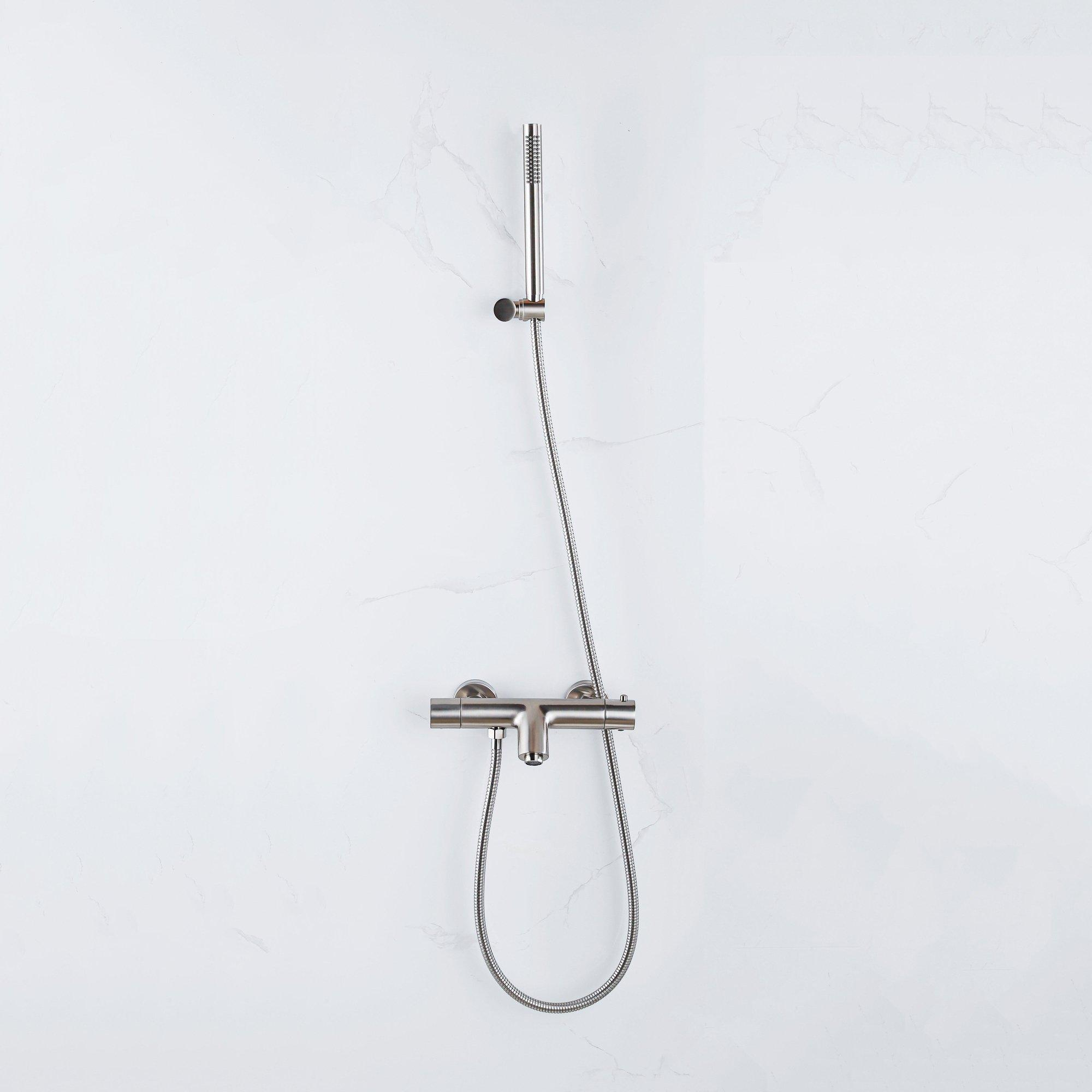 FugaFlow Eccelente Sobrado Badkamer Thermostatische badkraan met staafhanddouche, handdouchehouder en metalen doucheslang geborsteld RVS PVD