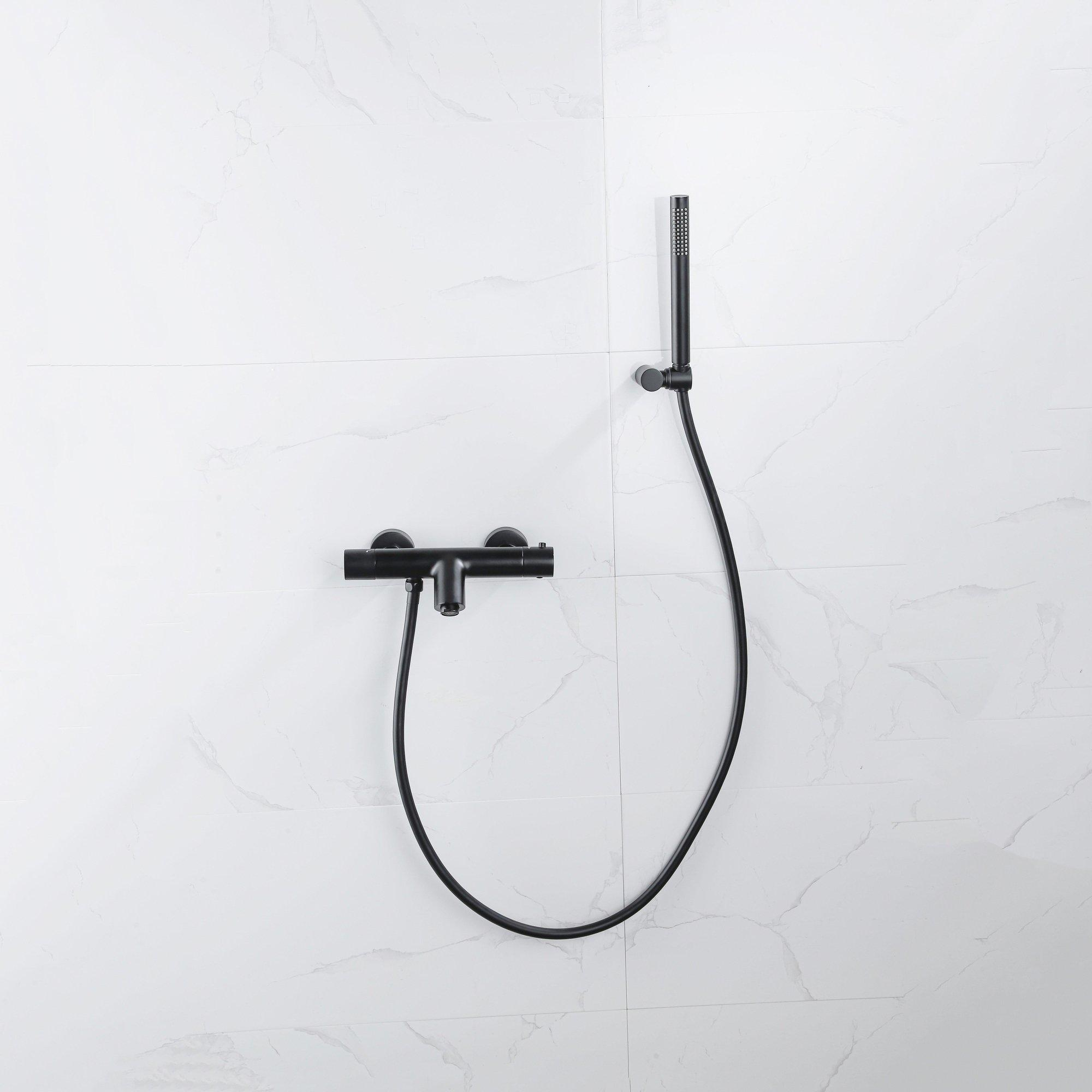 FugaFlow Eccelente Sobrado Badkamer Thermostatische badkraan met staafhanddouche, handdouchehouder en gladde doucheslang mat zwart