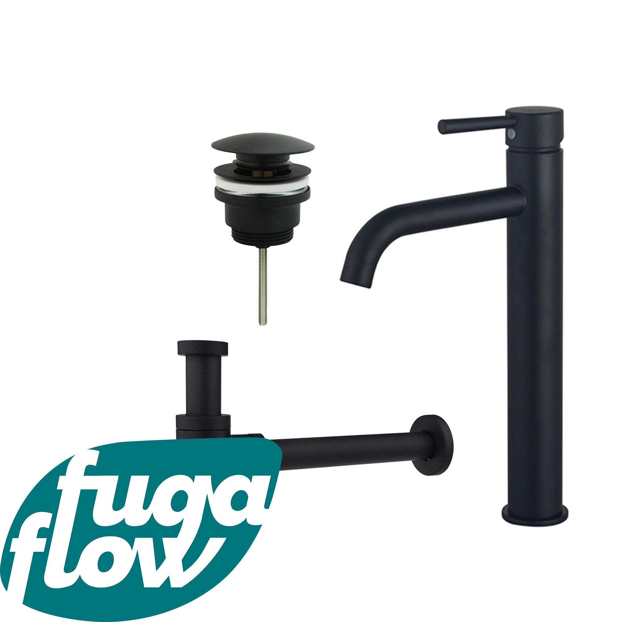 FugaFlow Eccelente Sobrado Badkamer Wastafelkraanset - verhoogde wastafelkraan - klikwaste plug - design sifon - Mat zwart
