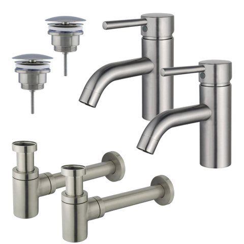 Maak kennis met de prachtige FugaFlow Eccelente Sobrado Wastafelkraanset, ontworpen voor dubbele wastafels met een lage wastafelkraan, always open plug, verlaagde design sifon en een afwerking van PVD Geborsteld RVS. Deze set combineert functionaliteit met elegantie en tilt de uitstraling van je badkamer naar een hoger niveau.