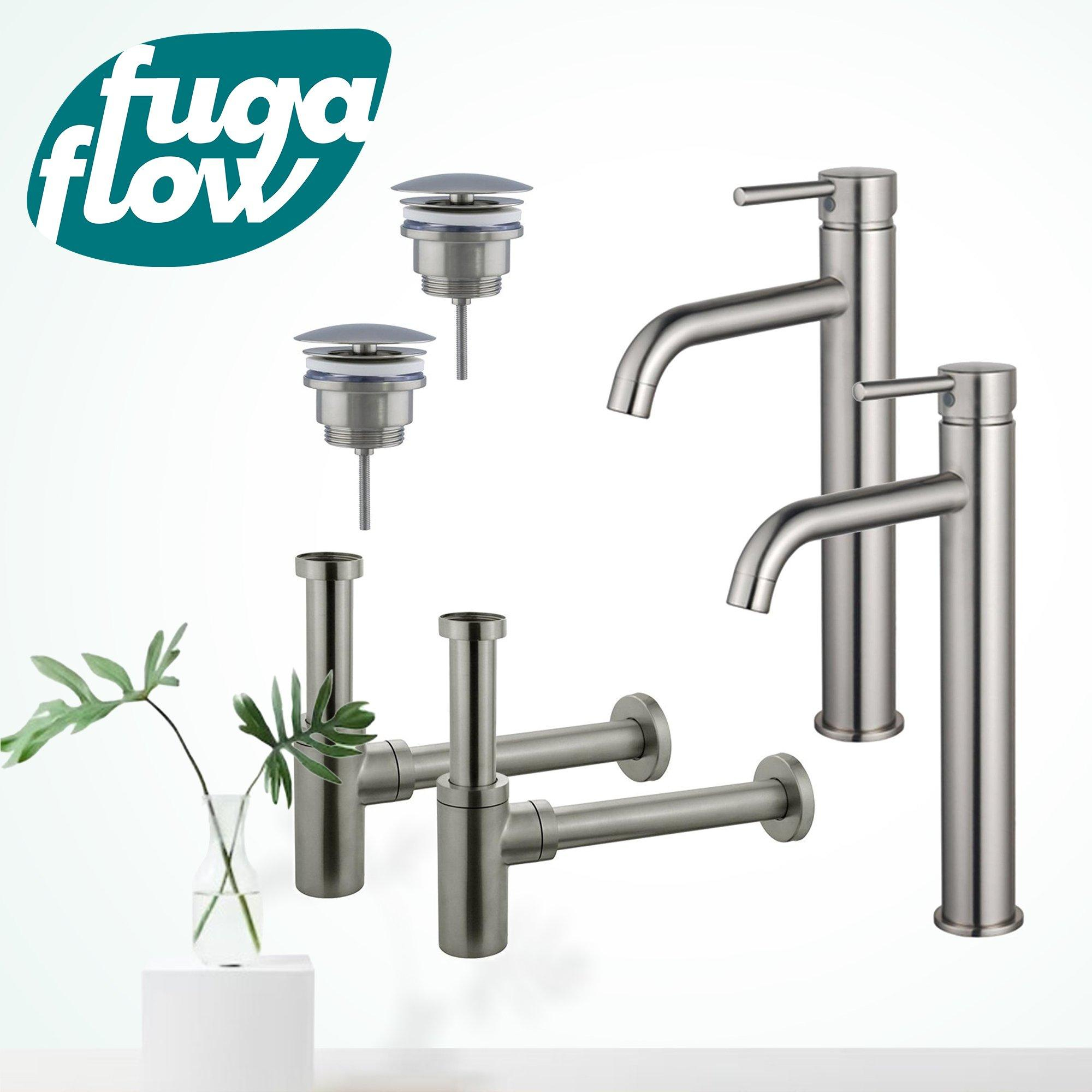 De stijlvolle uitstraling van de FugaFlow Eccelente Sobrado Wastafelkraanset maakt het een must-have voor liefhebbers van hedendaags design. Het ontwerp is zorgvuldig vormgegeven om zowel visueel aantrekkelijk als functioneel te zijn. De combinatie van een verhoogde wastafelkraan, altijd open plug en design sifon creëert een harmonieus geheel dat de badkamer transformeert tot een stijlvolle ruimte.