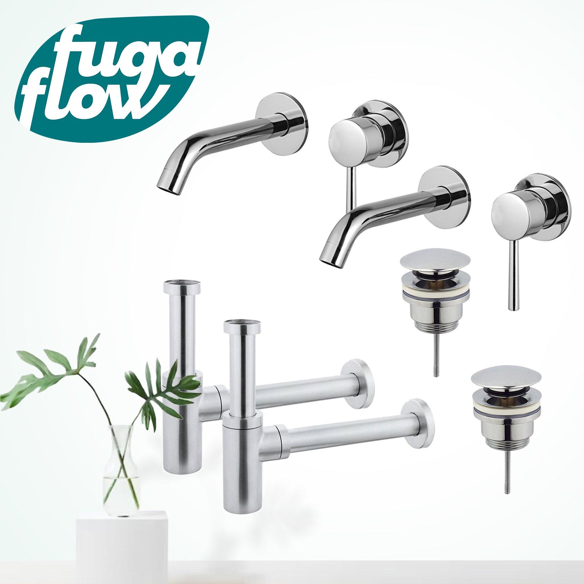 FugaFlow Eccelente Sobrado Badkamer Wastafelkraanset - voor dubbele wastafel - inbouw wastafelkraan - klikwaste plug - design sifon - Chroom
