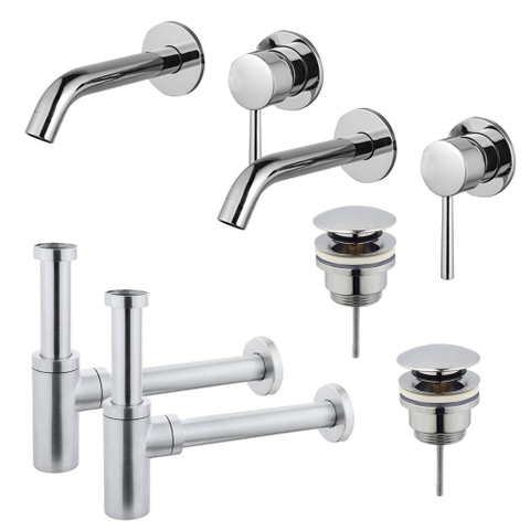 FugaFlow Eccelente Sobrado Wastafelkraanset - voor dubbele wastafel - inbouw wastafelkraan - klikwaste plug - design sifon - Chroom