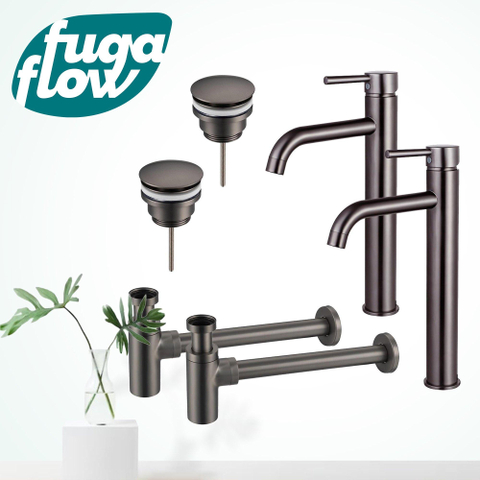 De FugaFlow Eccelente Sobrado Wastafelkraanset is een ware blikvanger die elegantie toevoegt aan elke badkamer. De combinatie van de verhoogde wastafelkraan, klikwaste plug en design sifon creëert een harmonieus geheel dat de ruimte verfraait. De PVD Gepolijst Gunmetal afwerking voegt een vleugje verfijning toe aan het geheel.