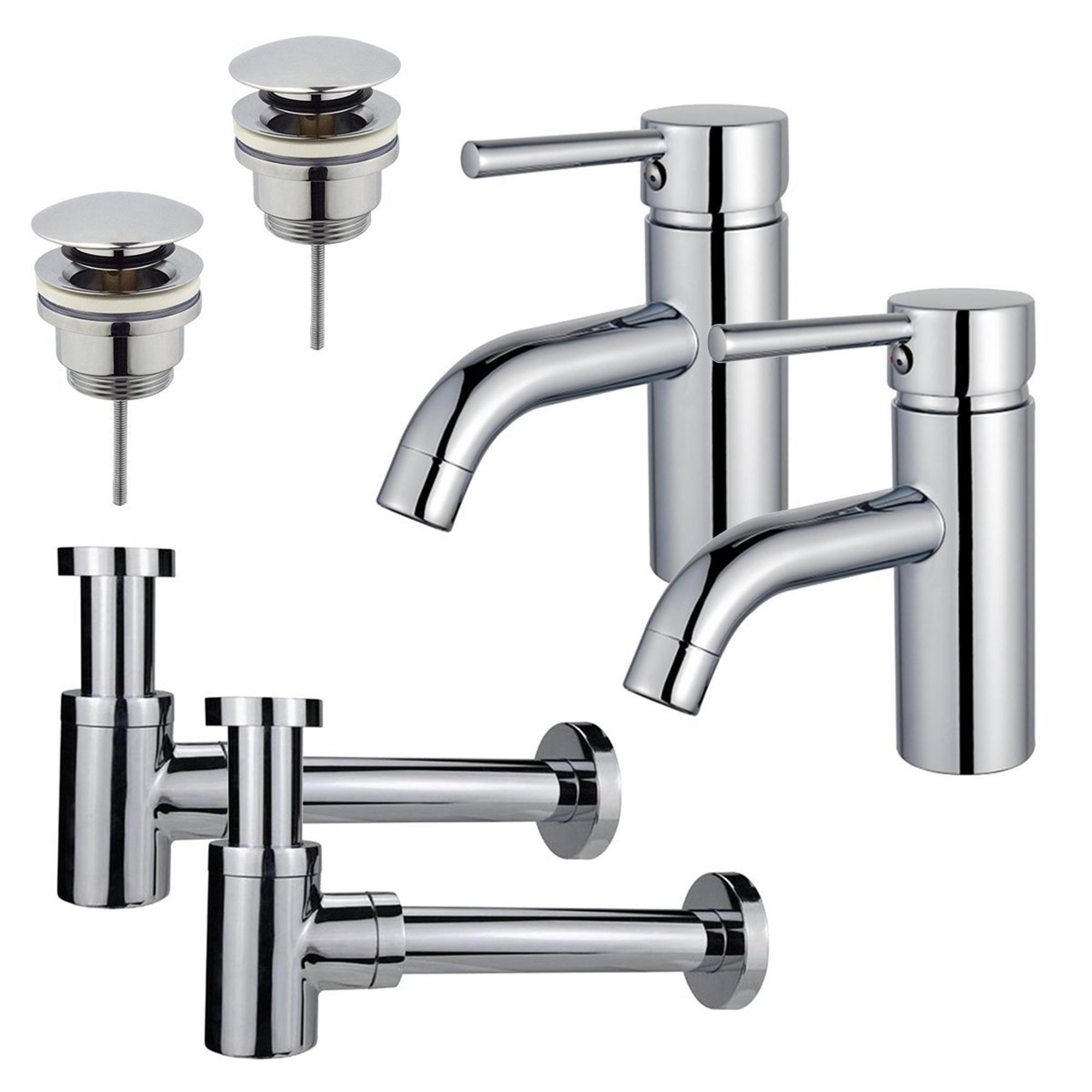 FugaFlow Eccelente Sobrado Wastafelkraanset - voor dubbele wastafel - lage wastafelkraan - klikwaste plug - verlaagde design sifon - Chroom