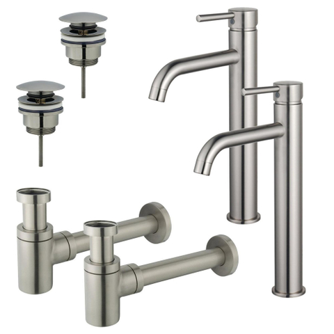 De FugaFlow Eccelente Sobrado Wastafelkraanset is een prachtige toevoeging aan elke badkamer. Met zijn verhoogde wastafelkraan, klikwaste plug en verlaagde design sifon, straalt dit product elegantie en stijl uit. Gemaakt van hoogwaardig PVD geborsteld roestvrij staal, combineert deze wastafelkraanset functionaliteit met een modern design.