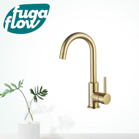 De FugaFlow Eccelente Sobrado keukenkraan is een prachtig ontworpen stuk dat direct een vleugje elegantie toevoegt aan elke keuken. Met zijn draaibare uitloop en de luxueuze afwerking in geborsteld messing (goud), is deze kraan niet alleen functioneel maar ook een ware blikvanger. Of je nu een moderne of klassieke keuken hebt, deze kraan past perfect bij elke stijl en voegt een vleugje luxe toe aan je interieur.