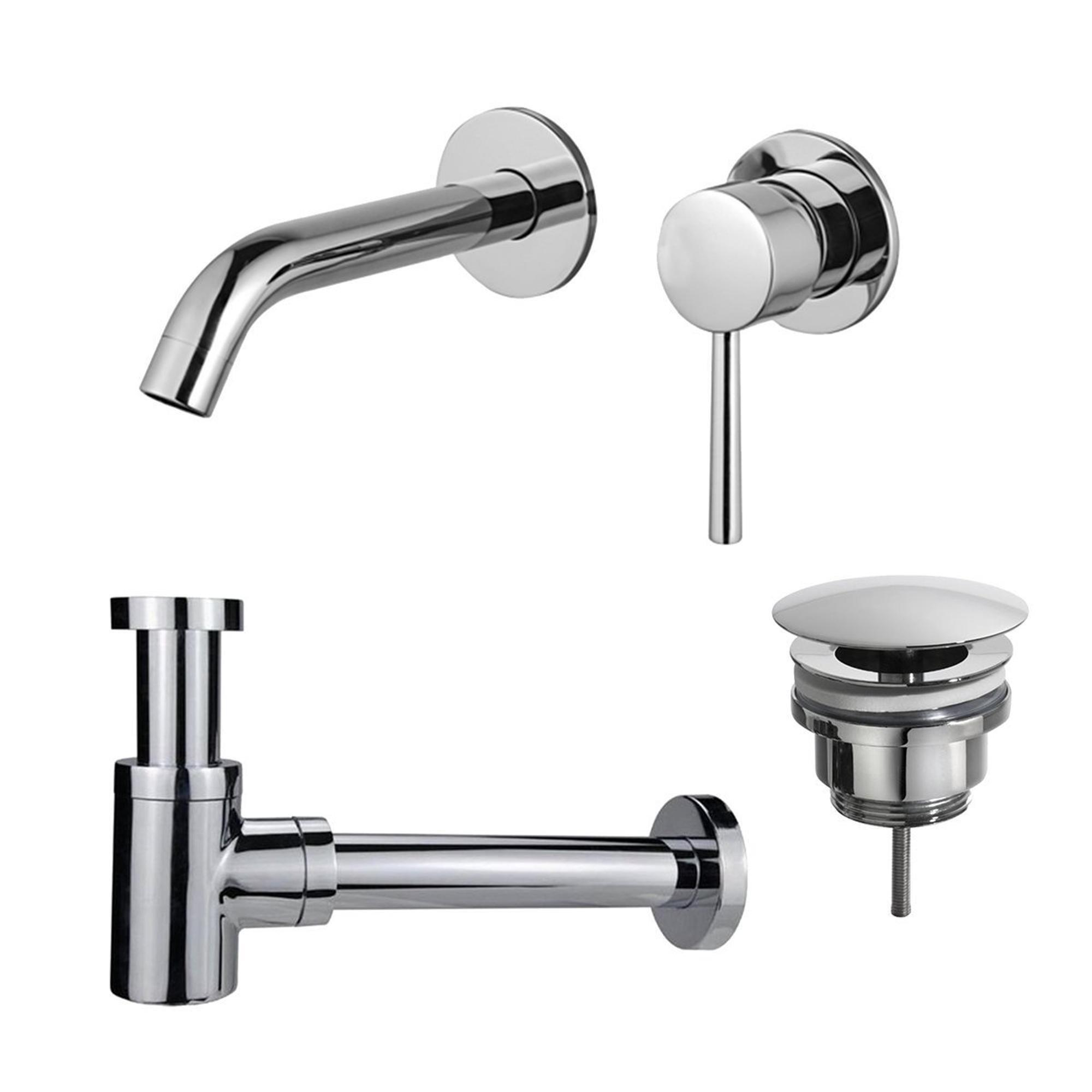 FugaFlow Eccelente Sobrado Badkamer Slim Wastafelkraanset - inbouw wastafelkraan - always open plug - verlaagde design sifon - Chroom