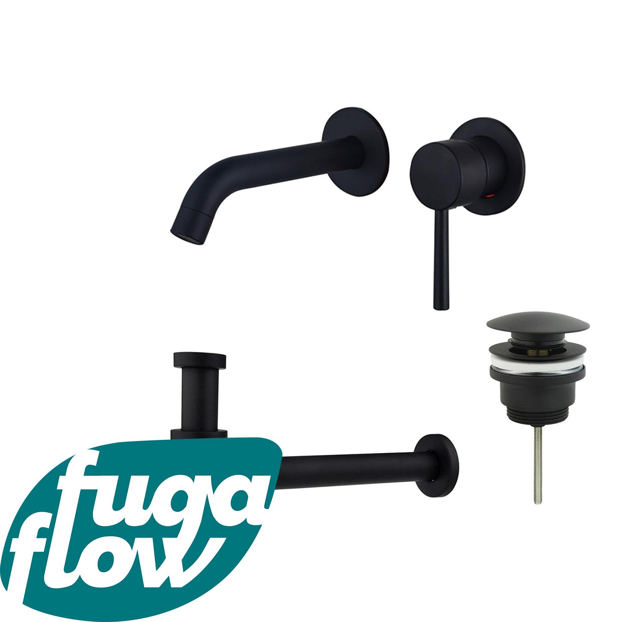 FugaFlow Eccelente Sobrado Slim Wastafelkraanset - inbouw wastafelkraan - klikwaste plug - verlaagde design sifon - Mat zwart