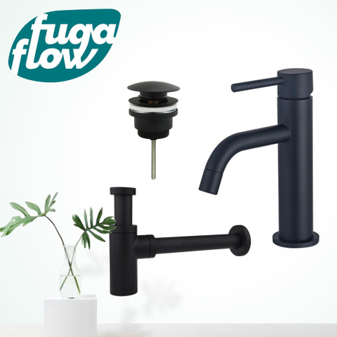 FugaFlow Eccelente Sobrado Slim Wastafelkraanset - lage wastafelkraan - klikwaste plug - design sifon - Mat zwart