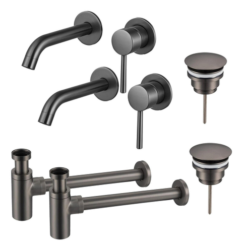 FugaFlow Eccelente Sobrado Badkamer Slim Wastafelkraanset - voor dubbele wastafel - inbouw wastafelkraan - always open plug - design sifon - PVD Gepolijst Gunmetal