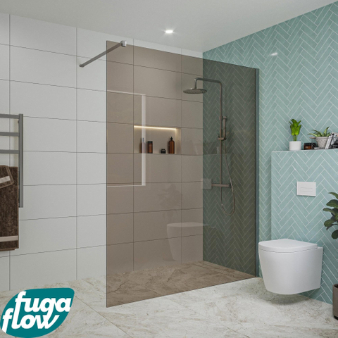 De FugaFlow Eccelente Vetro inloopdouche straalt elegantie uit in elke badkamer. Het rookglazen paneel met zijn subtiele tint voegt een vleugje mysterie toe en creëert een sfeer van privacy. De chroomafwerking geeft een glanzende touch die de elegantie van het ontwerp benadrukt. Deze inloopdouche is de perfecte keuze voor wie op zoek is naar een combinatie van stijl en klasse.