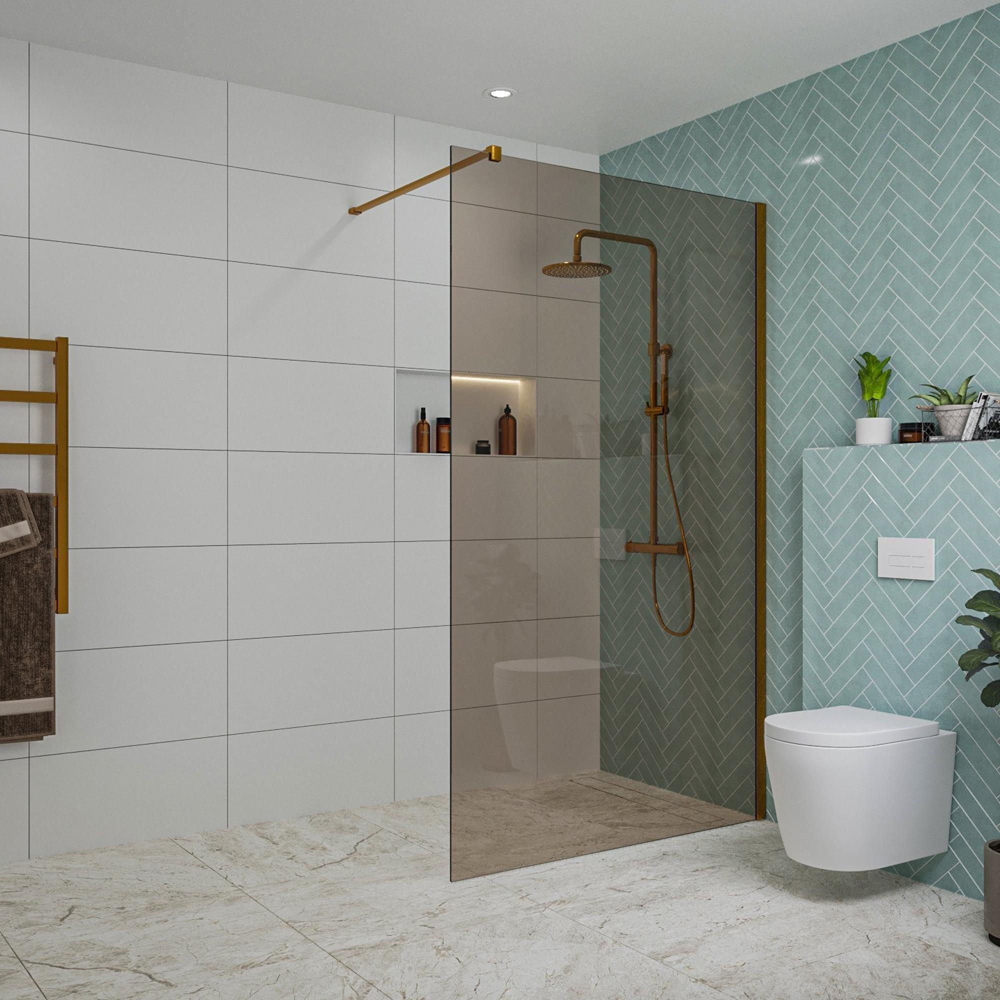 FugaFlow Eccelente Vetro inloopdouche badkamer - 120x200cm - rookglas - wandarm - geborsteld koper