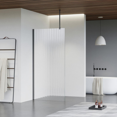 De FugaFlow Eccelente Vetro inloopdouche straalt een majestueuze uitstraling uit die elke badkamer naar een hoger niveau tilt. Het ribbelglas creëert een prachtig diffuus lichteffect en zorgt voor een subtiele privacy. De gunmetal afwerking voegt een vleugje luxe toe en geeft de inloopdouche een tijdloze elegantie. Met zijn plafondarm creëert deze inloopdouche een ruimtelijk gevoel en biedt het ultiem comfort tijdens het douchen.