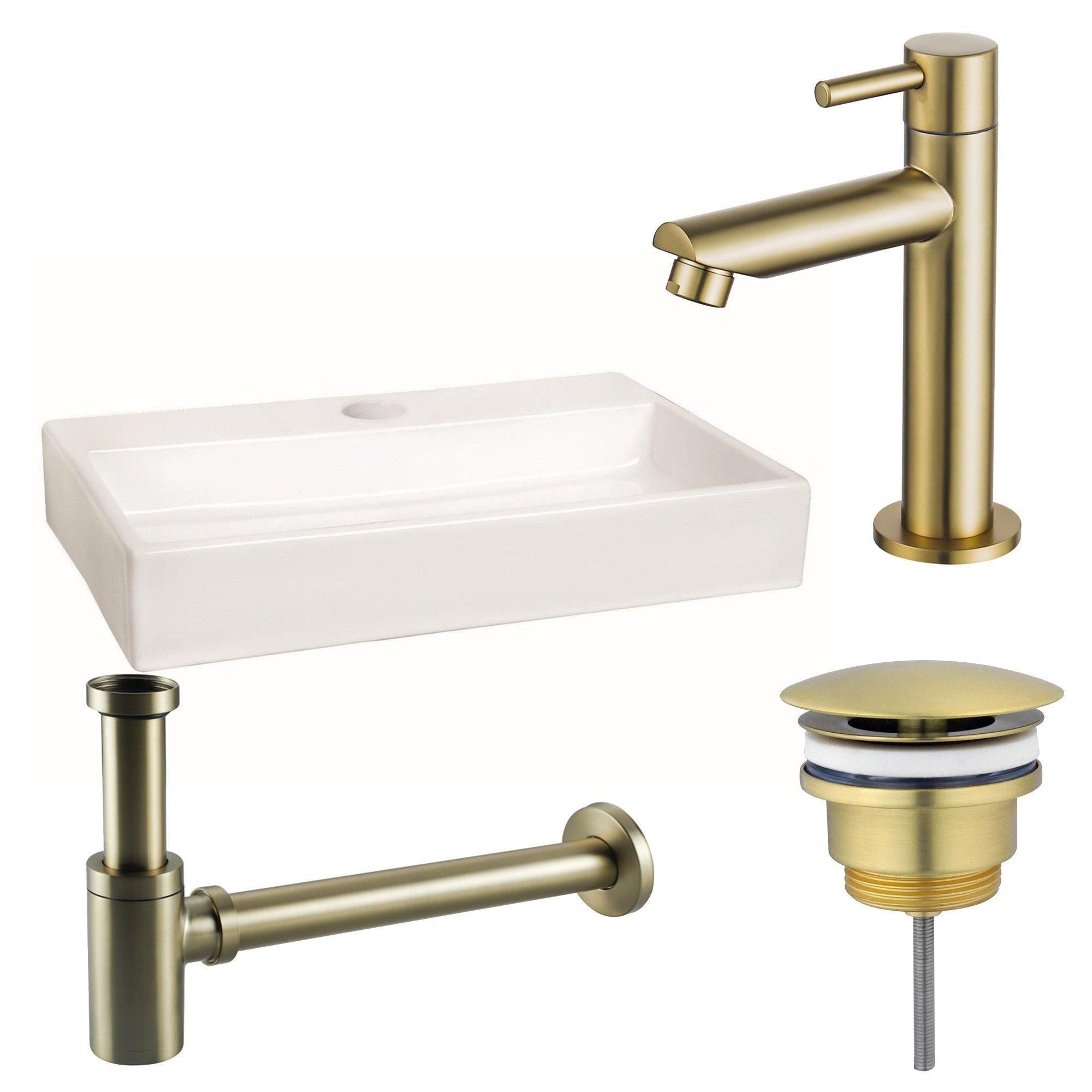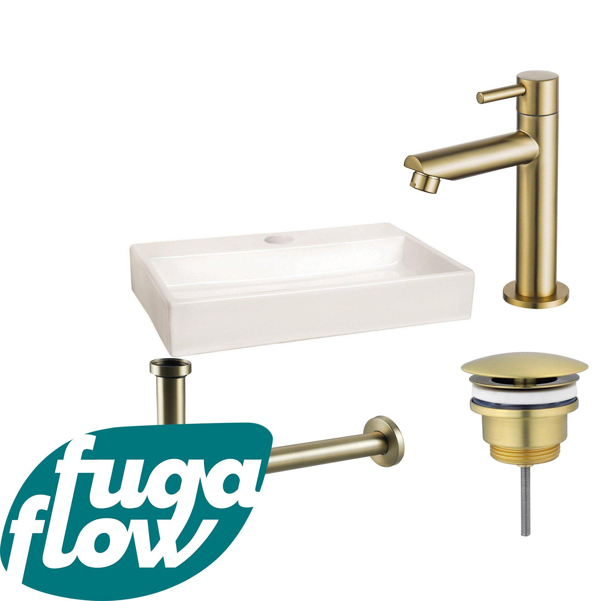 FugaFlow Eccelente Arredo fonteinset - 38x7x24cm - 1 kraangat - keramiek - fonteinkraan messing geborsteld - glans wit