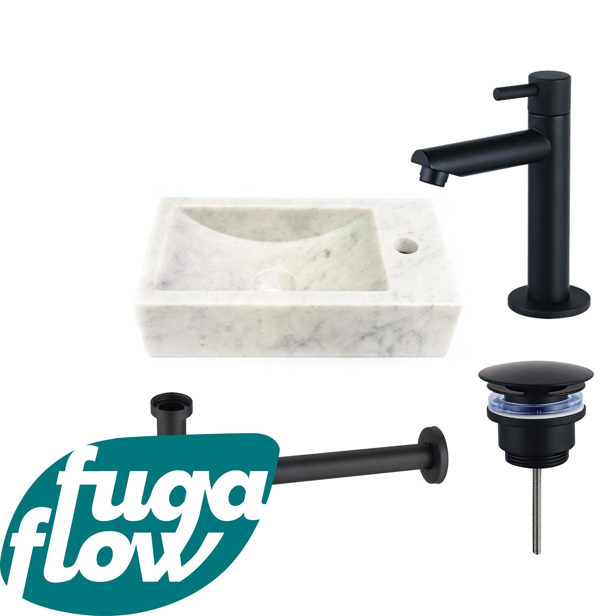 FugaFlow Eccelente Arredo fonteinset - 22x40x10cm - 1 kraangat - rechts - marmer - fonteinkraan zwart mat - wit -