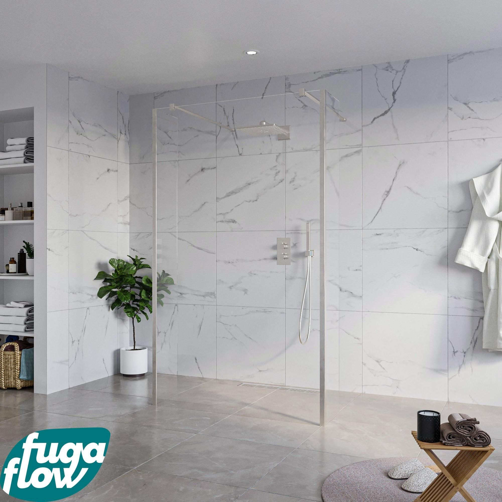 FugaFlow Eccelente Vetro Vrijstaande Inloopdouche - 120x200cm - Helder - antikalk - 8mm veiligheidsglas - 2 zijwanden 30cm - met wandarmen en hoekprofielen - RVS geborsteld