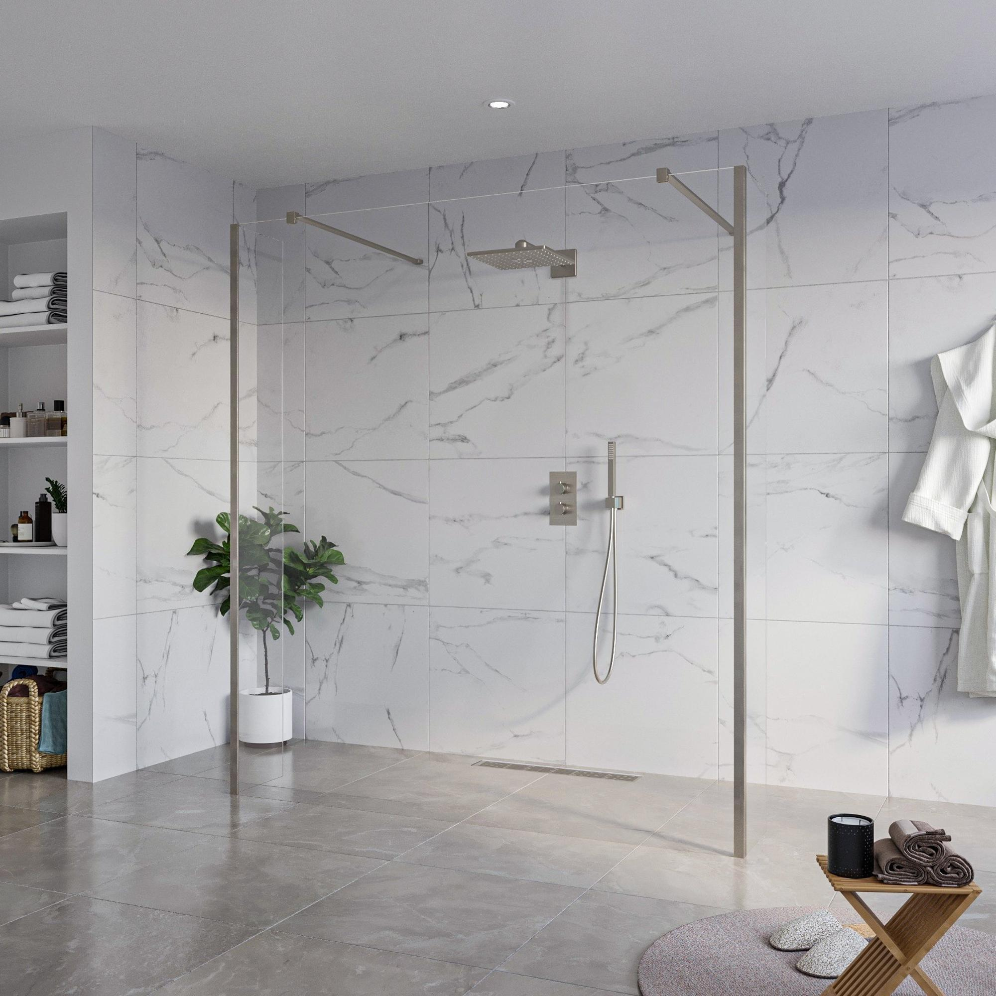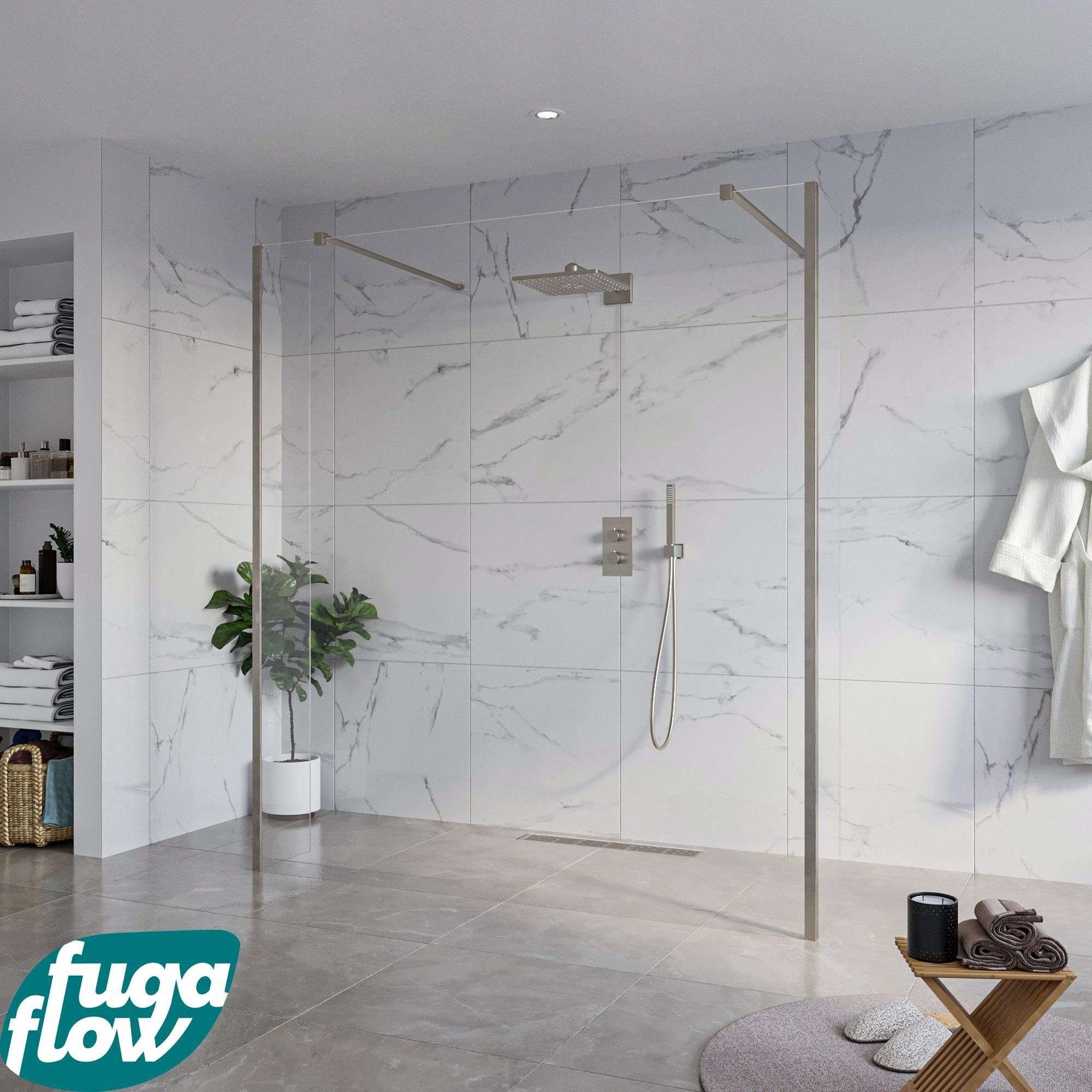 De FugaFlow Eccelente Vetro Vrijstaande Inloopdouche straalt een magnifieke schoonheid uit. Het heldere design en de elegante lijnen maken deze douche tot een waar pronkstuk in jouw badkamer. Het 8mm veiligheidsglas zorgt niet alleen voor een luxe uitstraling, maar ook voor stevigheid en veiligheid tijdens het douchen. Met zijn ruime afmetingen van 180x200cm biedt deze inloopdouche een comfortabele en ontspannende doucheruimte.