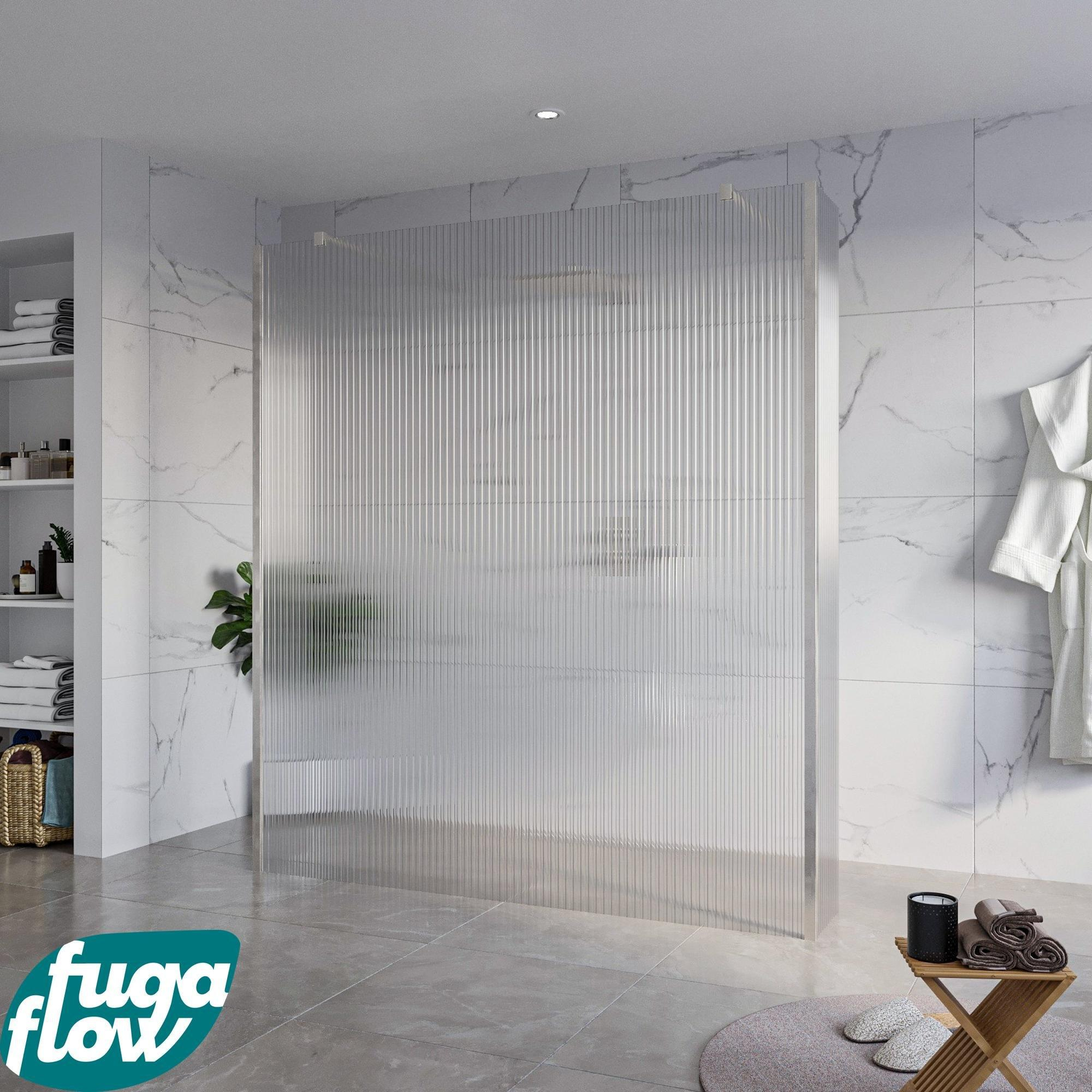 De FugaFlow Eccelente Vetro Vrijstaande Inloopdouche straalt majesteit uit in je badkamer. Het helder geribbelde glas voegt een vleugje verfijning toe, terwijl het antikalksysteem zorgt voor een gemakkelijk te onderhouden oppervlak. Met 8mm veiligheidsglas en stevige wandarmen en hoekprofielen van RVS, is deze inloopdouche niet alleen mooi, maar ook duurzaam en veilig.