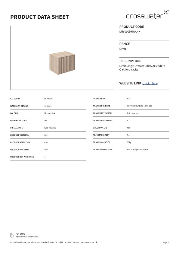 Dit prachtige Crosswater Limit badkamermeubelset combineert functionaliteit en stijl op een verfijnde manier. Met zijn afmetingen van 60x45x45cm en strakke ontwerp past dit meubel perfect in elke moderne badkamer. De combinatie van modern eiken en antraciet zorgt voor een tijdloze uitstraling die de ruimte direct transformeert tot een oase van rust en schoonheid. Het meubel is voorzien van een handige lade voor het opbergen van al uw badkamerbenodigdheden, waardoor uw badkamer netjes en georganiseerd blijft.