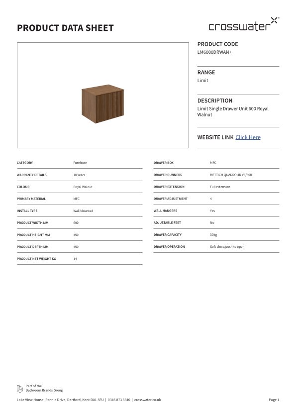 Gemaakt van hoogwaardige materialen en met vakmanschap vervaardigd, is de Crosswater Limit badkamermeubelset duurzaam en langdurig. De robuuste constructie zorgt ervoor dat dit meubelstuk bestand is tegen dagelijks gebruik in de badkamer, terwijl de royale walnootafwerking zijn kwaliteit en schoonheid behoudt door de jaren heen.