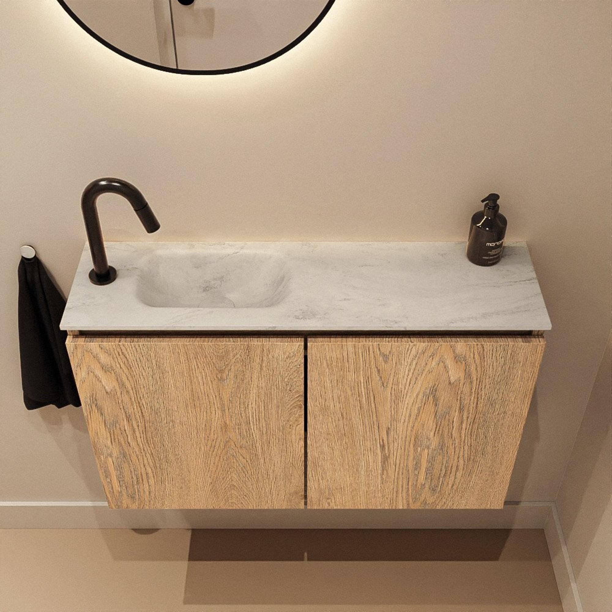 MONDIAZ TURE-DLUX Toiletmeubel - 80cm - Washed Oak - EDEN - wastafel Opalo - positie links - 1 kraangat