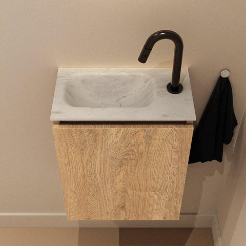 MONDIAZ TURE-DLUX Toiletmeubel - 40cm - Washed Oak - EDEN - wastafel Opalo - positie links - 1 kraangat