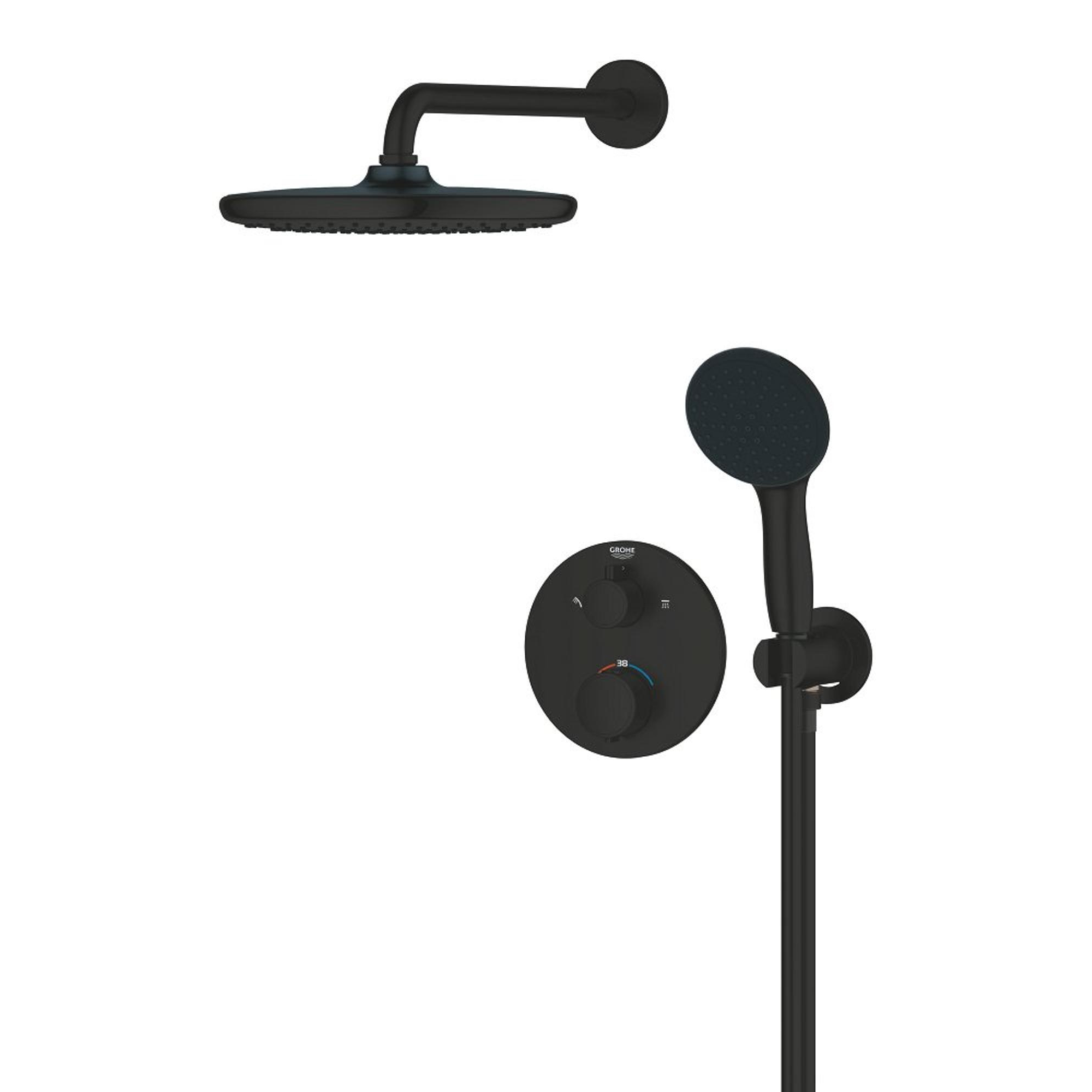 Grohe Precision showerset compleet m. handdouche ø11cm m. 2 straalsoorten en hoofddouche ø25cmm. inbouw douchekraan therm. rond m. omstel mat zwart