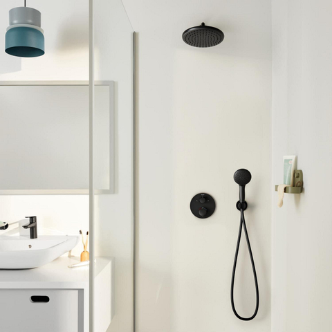 Ontdek de Grohe Precision showerset compleet, een prachtige toevoeging aan jouw badkamer die zowel stijlvol als functioneel is. Met een handdouche van ø11cm met 2 verschillende straalsoorten en een hoofddouche van ø25cm, gecombineerd met een inbouw douchekraan thermosstaat met omstel in mat zwart, brengt deze set een moderne uitstraling en luxe naar jouw dagelijkse douche-ervaring. Geniet van ultiem comfort en een verfijnde esthetiek met de Grohe Precision showerset compleet.