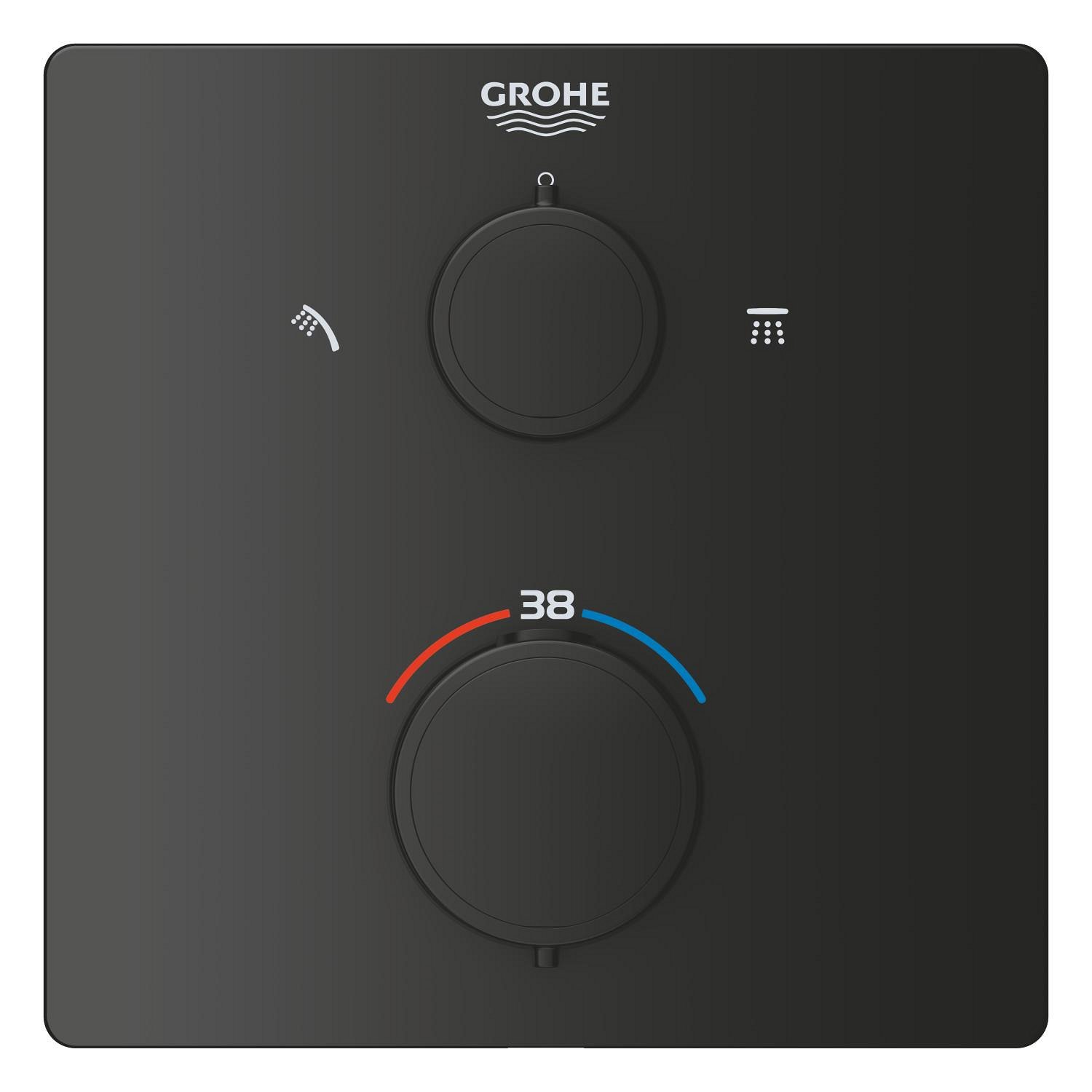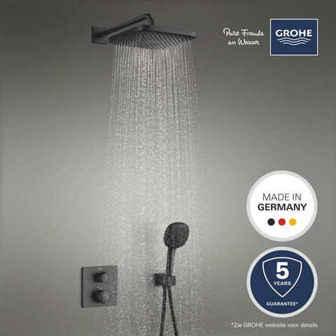 Grohe Precision showerset compleet m. handdouche ø11cm m. 2 straalsoorten en hoofddouche 25x25cmm. inbouw douchekraan therm. vierkant m. omstel mat zwart